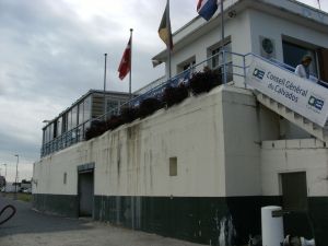 We found this building very odd- this design, we will find alone the coastline, built by Germans. On this base, they built a clubhouse ? .. very odd looking when you view all the other buildings.